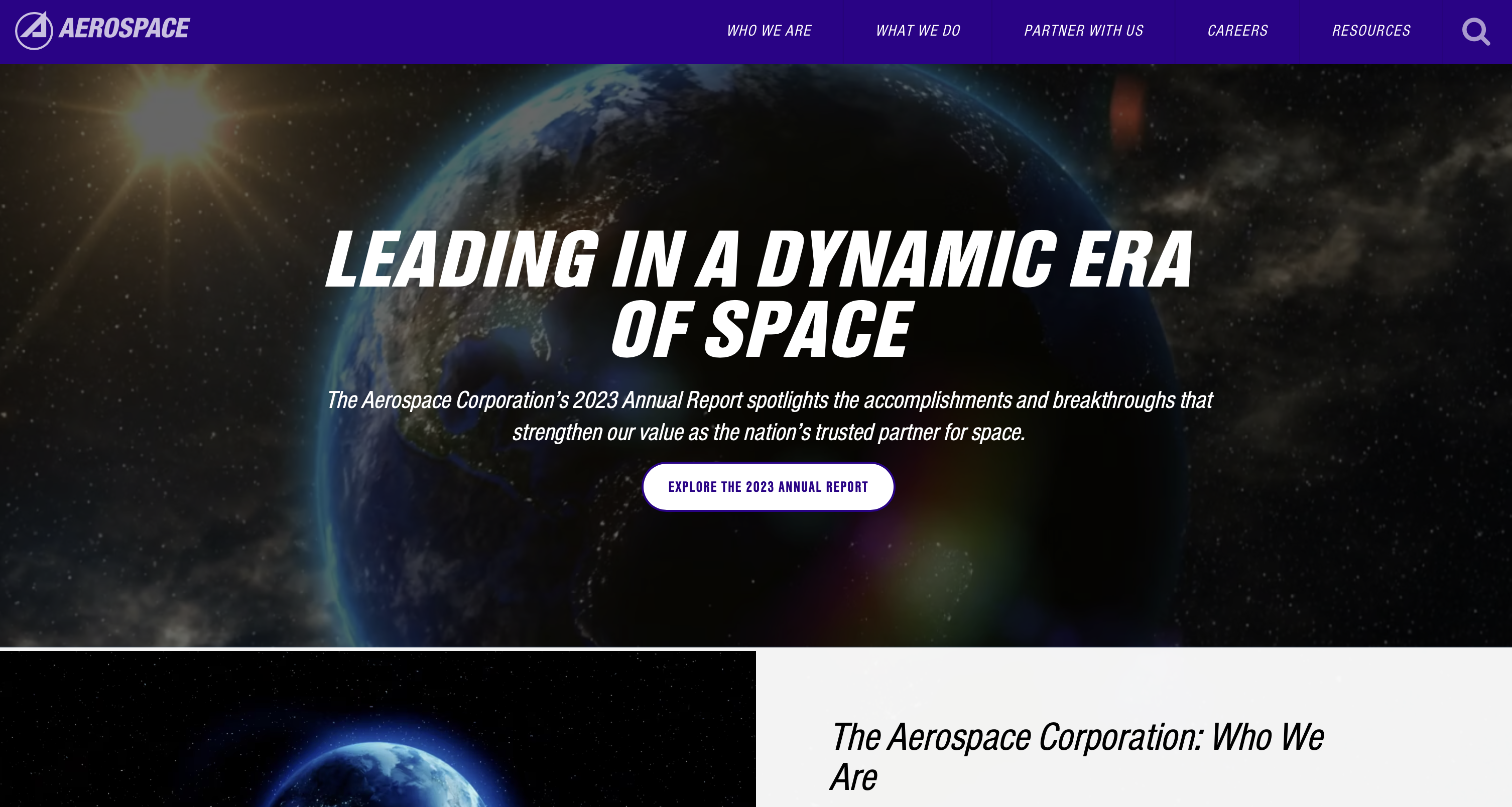 The Aerospace Corp. is a nonprofit government contractor that exists to basically be experts to provide objective technical analysis and assessment for government, civil, and commercial customers.