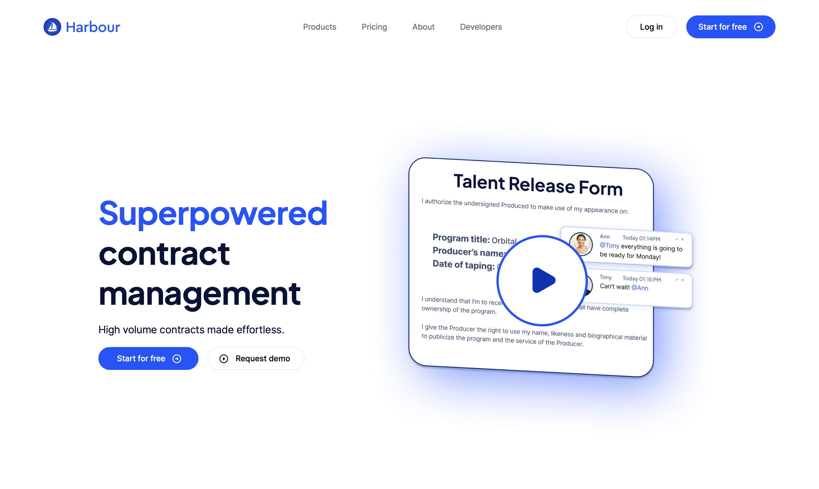 HarbourShare is a super powered contract management platform. You can think of it like a more powerful DocuSign.